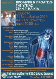 Συμμετοχή και οργάνωση ημερίδας Πρόληψη και Προαγωγή της Υγείας στην Γ’ Ηλικία